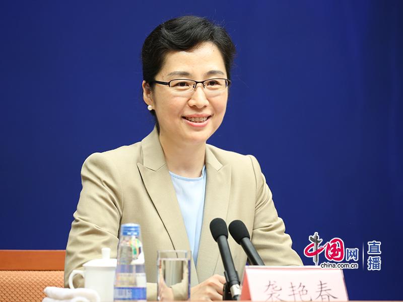 图为国新办新闻局副局长、新闻发言人袭艳春主持发布会。中国网 张若梦 摄