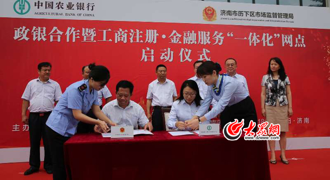 29日,历下区市场监督管理局与中国农业银行股份有限公司济南历下支行签订工商注册登记业务合作框架协议。