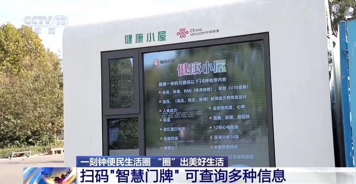 现在,张店区已有5000余栋居民楼安装了“智慧门牌”,同时社区还整合周边生活服务资源,布设“智慧健康小屋”,安装自助医疗体检机,引入自助售货机、无人售药店和政务服务一体机,打造智慧社区15分钟生活圈,一站式解决居民各类需求。