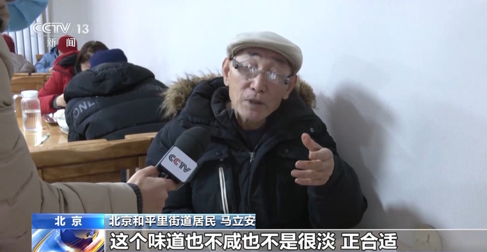 北京和平里街道居民 马立安:饭菜质量挺好,而且量挺大,这个味道也不咸也不是很淡,正合适。