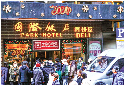 1月17日,上海黄河路国际饭店西饼吸引许多消费者。电视剧《繁花》的播出,带火了上海黄河路的各种美食,许多人专程赶来“打卡”品尝。新华社记者张建松摄