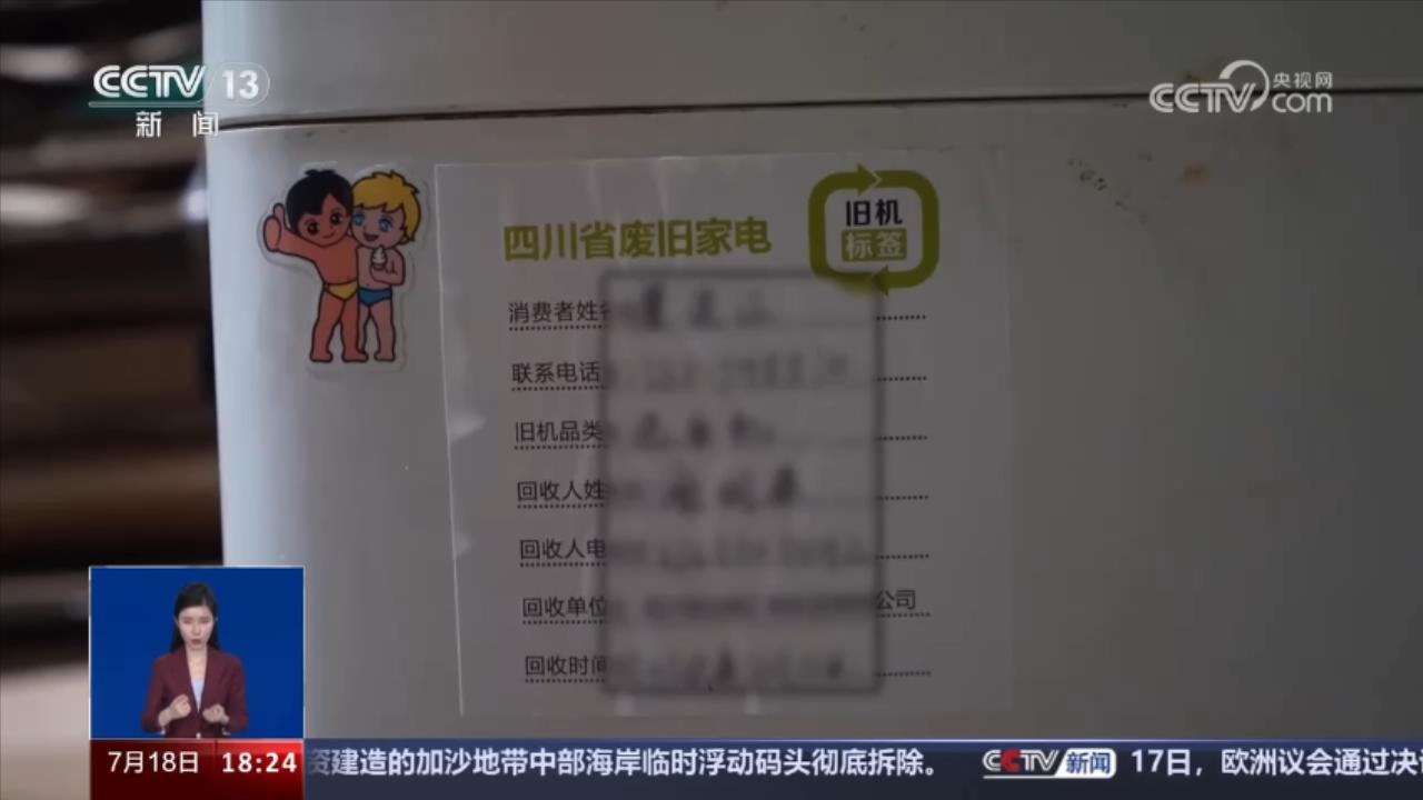 记者注意到,在这些回收的旧家电上,大多贴上了这样一张标签,标明了消费者和回收人信息,相当于以旧换新凭证,回收企业将信息填报之后,消费者在购买新家电时就可以享受补贴。这些回收来的旧家电和其他废品一块由大货车清运至分拣中心。