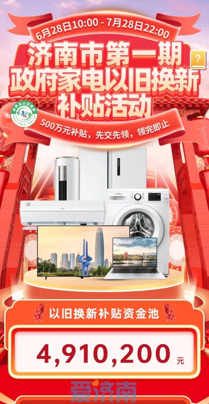 6月26日,济南市商务局联合市财政局制定印发《济南市2024年政府家电以旧换新补贴实施细则》支持济南家电以旧换新,活动从6月28日起,持续到年底。