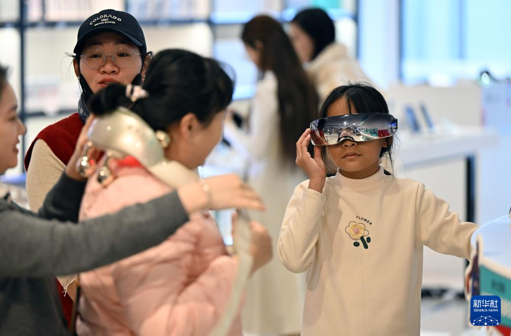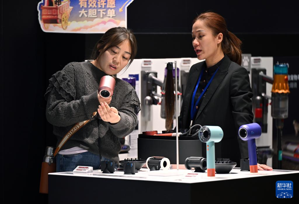 12月21日,顾客在海南省海口市日月广场免税店试用按摩仪。新华社记者郭程摄