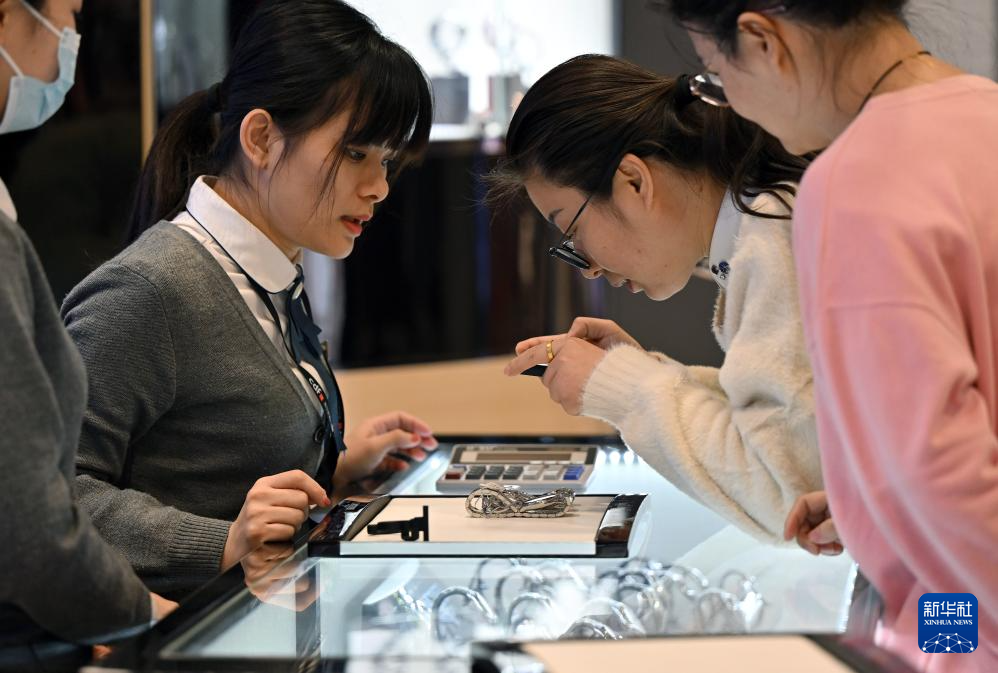 12月21日,顾客在海南省海口市日月广场免税店选购手表。新华社记者郭程摄