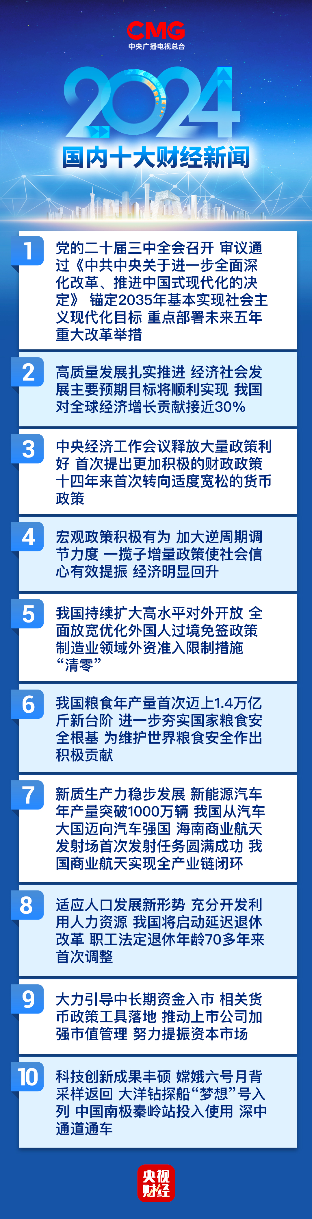 中央广播电视总台发布2024年国内、国际十大财经新闻