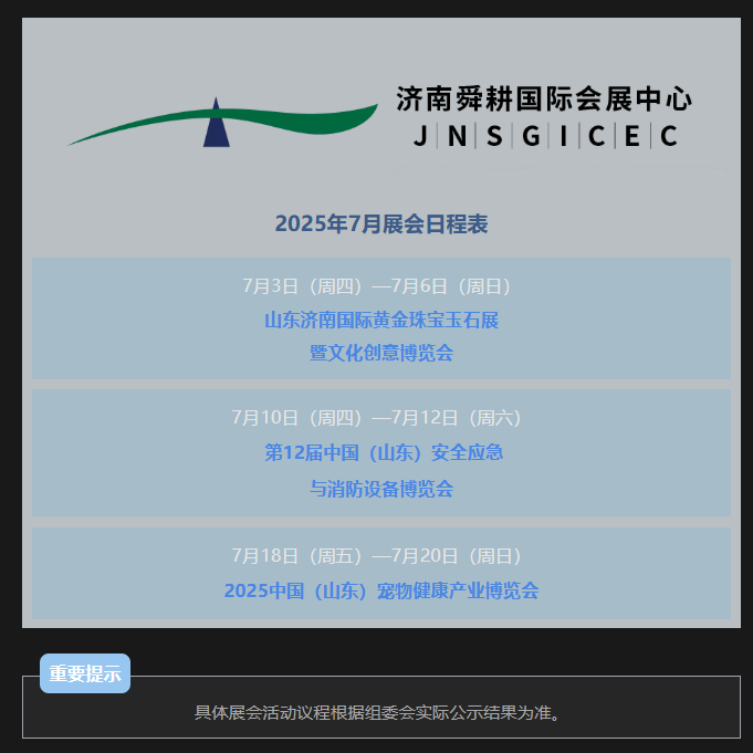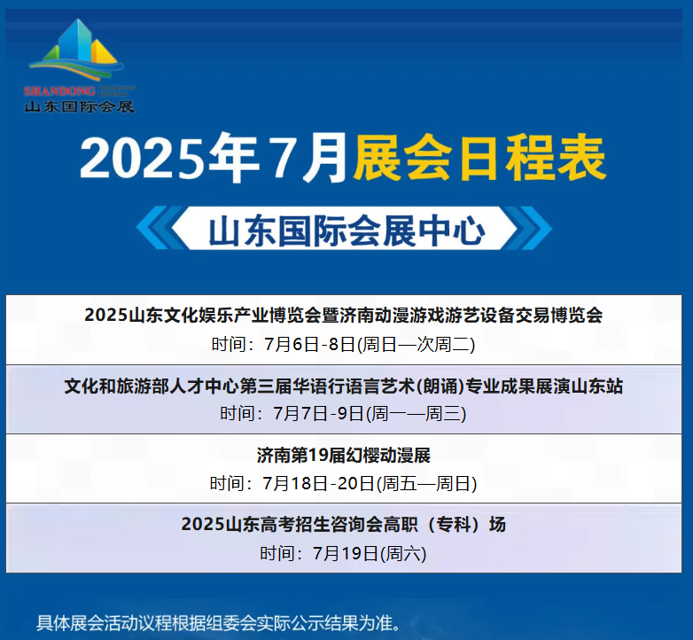 2025年7月山东国际会展中心、济南舜耕国际会展中心展会日程表